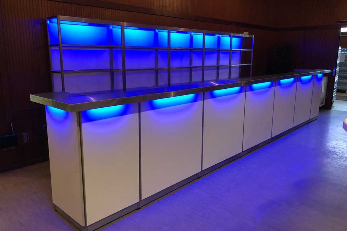 Ob im Festzelt oder in einer Halle – unsere Bars machen sich überall gut. Sie erhalten bei uns Modelle in verschiedenen Materialien und Farben. Es lassen sich einfach Kombinationen aus einzelnen Elementen schaffen, so dass Ihr Barbereich die Form Ihrer Wahl erhält. Unser erfahrenes Team berät Sie gerne bereits bei der Planung für die Einrichtung von Events. Wir stellen Ihnen unsere Erfahrung und unser fundiertes Fachwissen zur Verfügung, damit Ihre Veranstaltung ein voller Erfolg wird. Rufen Sie uns an und lassen Sie sich unverbindlich informieren.