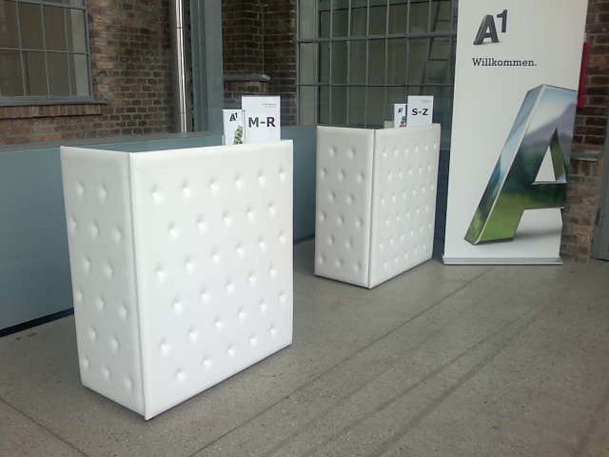 Schaffen Sie ein elegantes Flair mit unseren vollflächig verlegten Teppichen oder Teppichen mit Unterbau für einen gelungenen Auftritt. Wir schaffen Schönheit für Stiegenaufgänge, Eingangsbereiche und Empfangsbereiche. Teppiche und Beläge erhalten Sie in verschiedenen Farben. Ein gemütliches Gefühl schaffen Pflanzen und Blumenbögen, Stehlampen, Tischlampen und Kleiderständer. Vom Prospektständer bis zum Flipchart – wir bei der "Unger Company" Veranstaltungsservice aus 1040 Wien bieten umfangreiche Ausstattung für Ihr Event. Sehen Sie sich das enorme Angebot an. Unsere Mietmöbel und -gegenstände kombinieren wir gerne für Sie nach Ihren individuellen Wünschen.