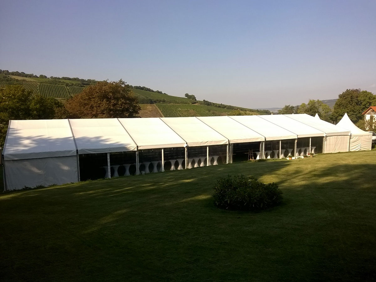 Egal wie groß die Veranstaltung ist, die Sie planen – wir bieten Ihnen die passenden Festzelte in verschiedenen Größen und Ausführungen, individuell erweiterbar mit Schwerlastboden, Stoffhimmel, Beleuchtung und Teppich.